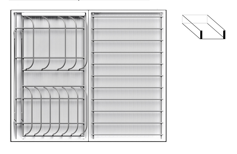 1 для посуды большой (423 x 248 мм, состоит из 1 х держатель металлический, 1 х поддон пластиковый, 2 х защелка-ограничитель)