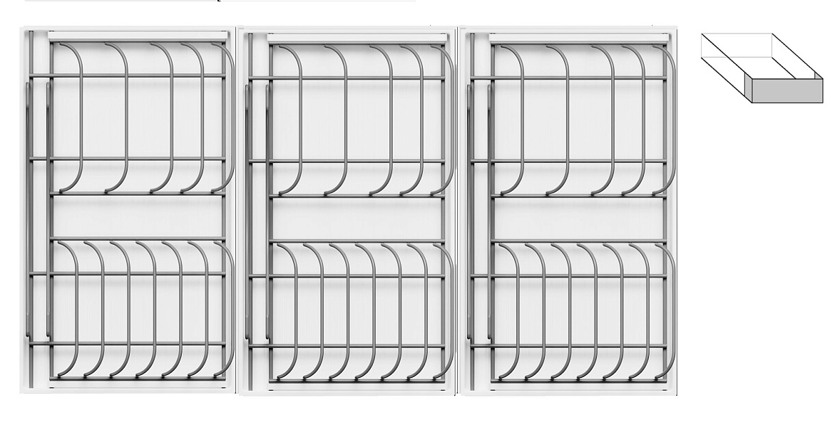 3 модуля для посуды большие (каждый модуль 423 x 248 мм, состоит из 1 х держатель металлический, 1 х поддон пластиковый, 2 х защелка-ограничитель)