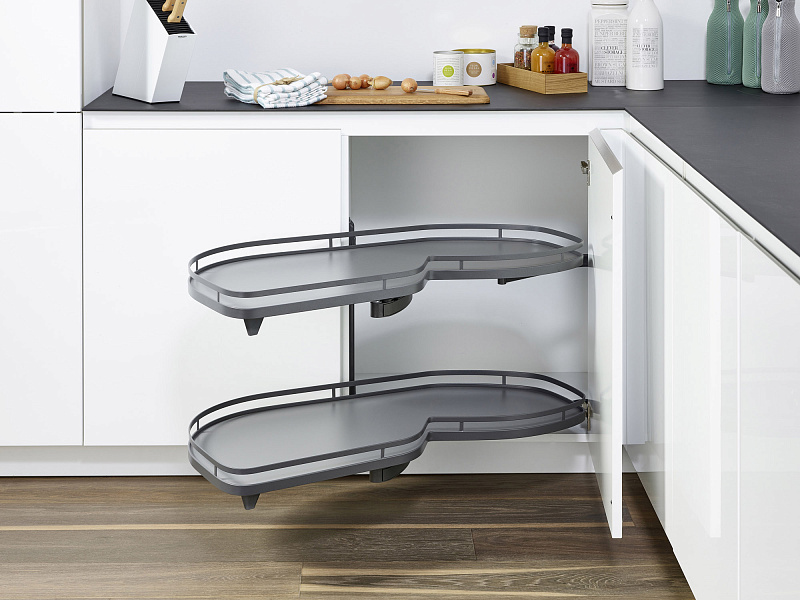 Комплект полок левый, Леманс 600 мм, Арена СТИЛЬ, 2 полки + рычаги, цвет АНТРАЦИТ, цвет дна Антрацит, антислип (2346269846)