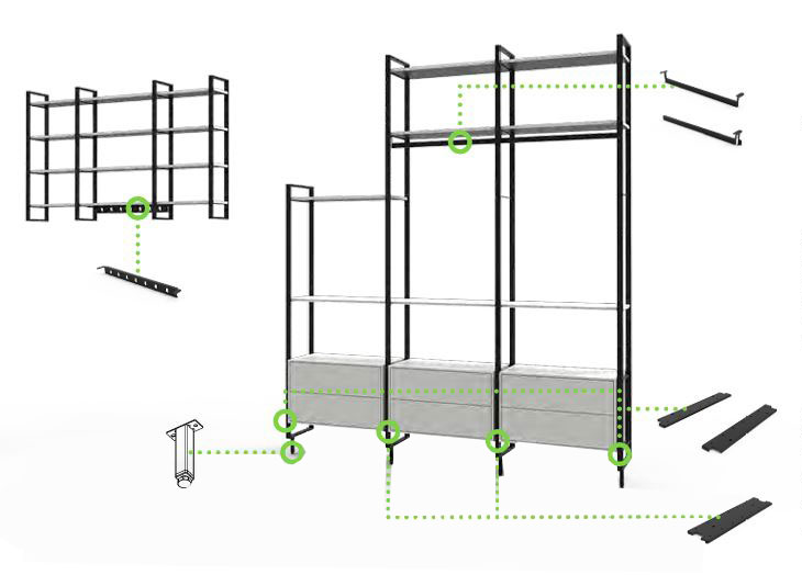 Полки, ящики в комплект не входят и изготавливаются самостоятельно.